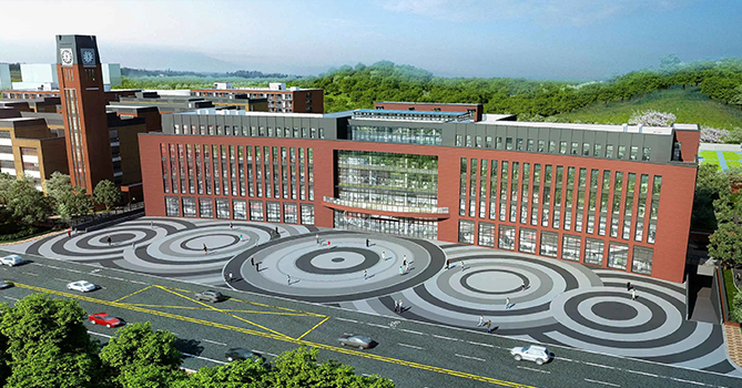 走進廣東外語外貿(mào)大學(xué)附設(shè)清遠外國語學(xué)校,紅色的外墻成為這所學(xué)校的主色調(diào)。廣外清遠外校項目占地面積約232畝,總建筑面積約26萬平方米,學(xué)??傮w建設(shè)以“設(shè)計學(xué)校就是設(shè)計未來”為理念,配備有室內(nèi)體育館、恒溫游泳館、600人報告廳,室內(nèi)外演出劇場、科創(chuàng)教育空間、活動室、國際田聯(lián)標準運動場等教學(xué)設(shè)施,為學(xué)生提供優(yōu)質(zhì)、舒適的學(xué)習(xí)生活環(huán)境。